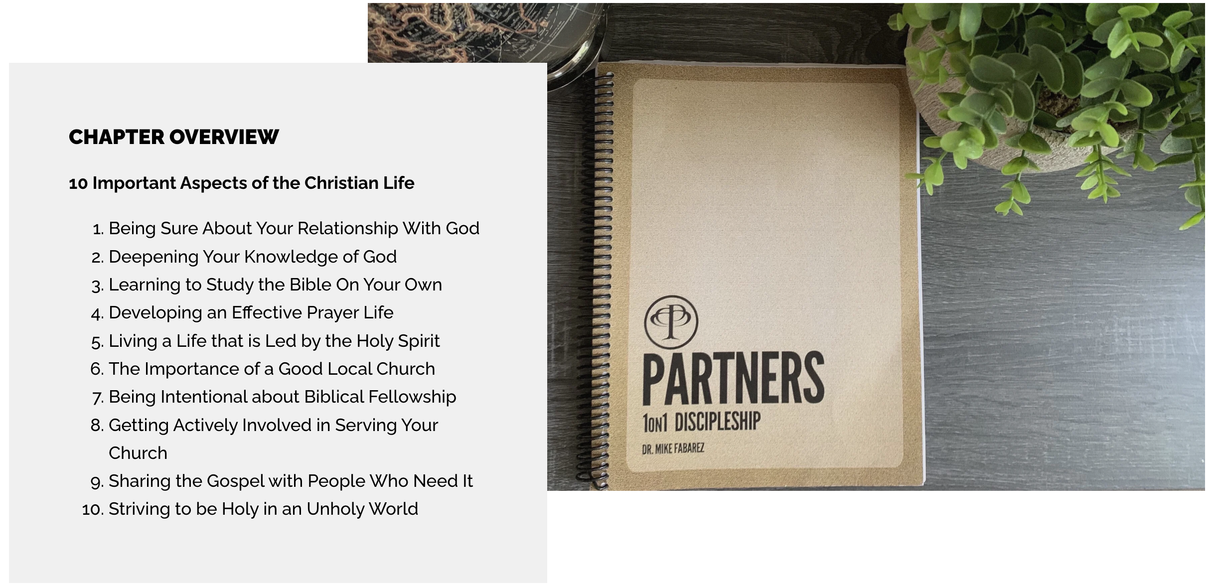 Partners is designed to get you personally connected on a weekly basis with a mature and growing Christian in order to help you advance in your understanding and application of ten biblical themes that are critically important in the Christian life.